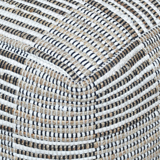 Kose Hand Woven Pit Loom Ivory & Natural Hemp Pouffe: Ivory