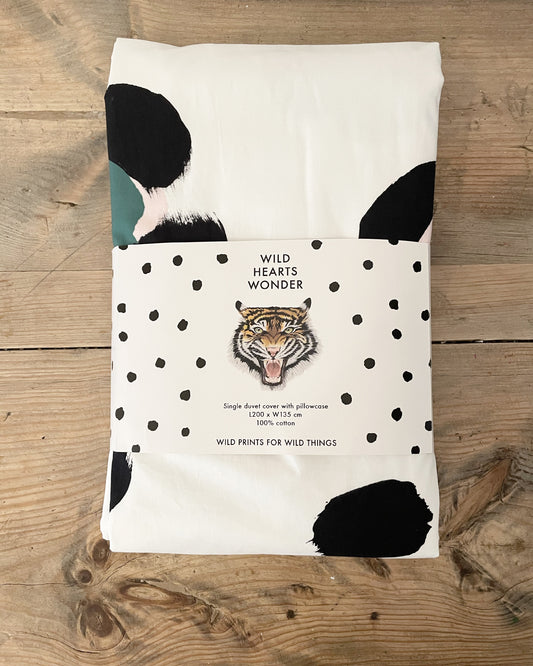 Leopard Splodge Single Bedding Duvet and Pillow Set in green and pink