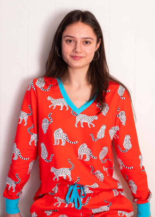 Anorak - Anorak Snow Leopards Organic Cotton Jersey Pyjamas (Coral)