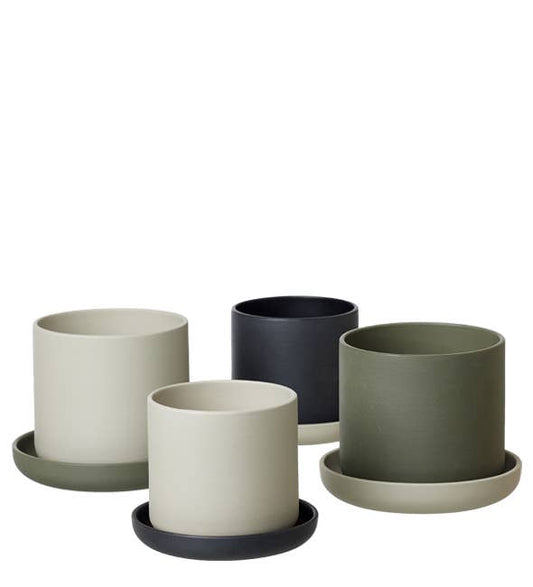 ANNA pot w/saucer1, sand finish, Burnt Olive