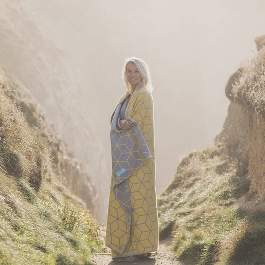 Grey and Yellow Geometric Recycled Cotton Blanket