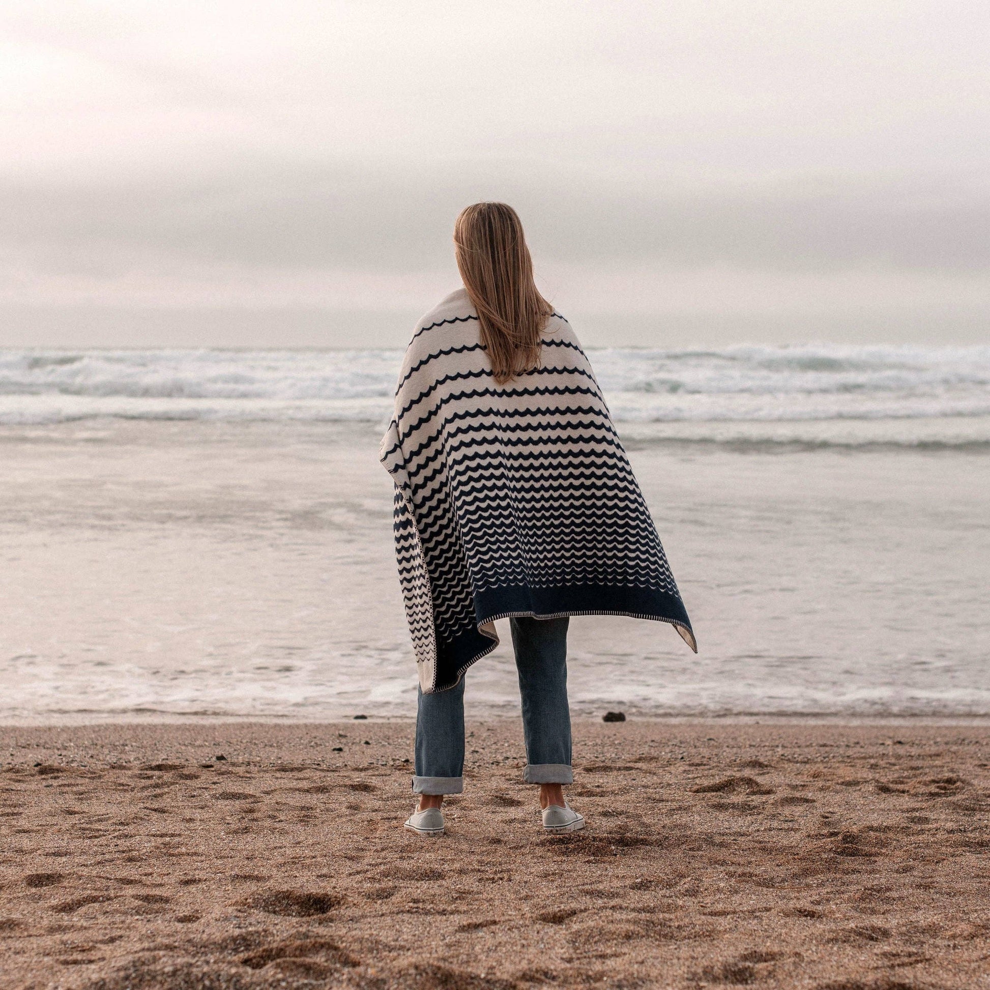Add a touch of coastal charm to your home with our Navy Swell Recycled Cotton Blanket. Made with recycled cotton, this blanket not only adds a pop of color, but also helps reduce waste and promotes sustainability. Stay warm and happy with this happy, eco-friendly addition to your living space.